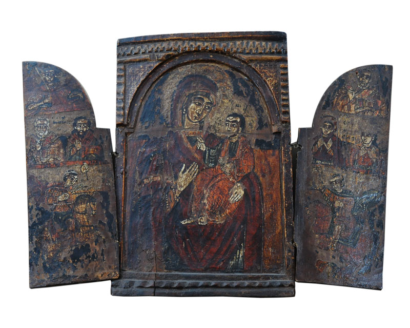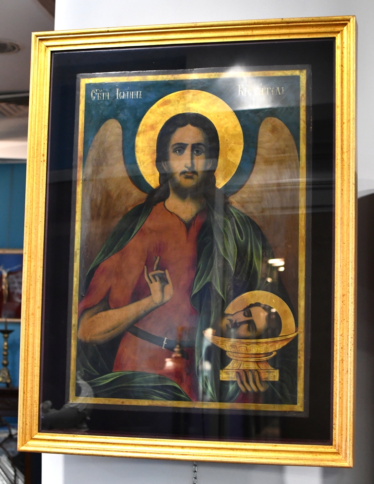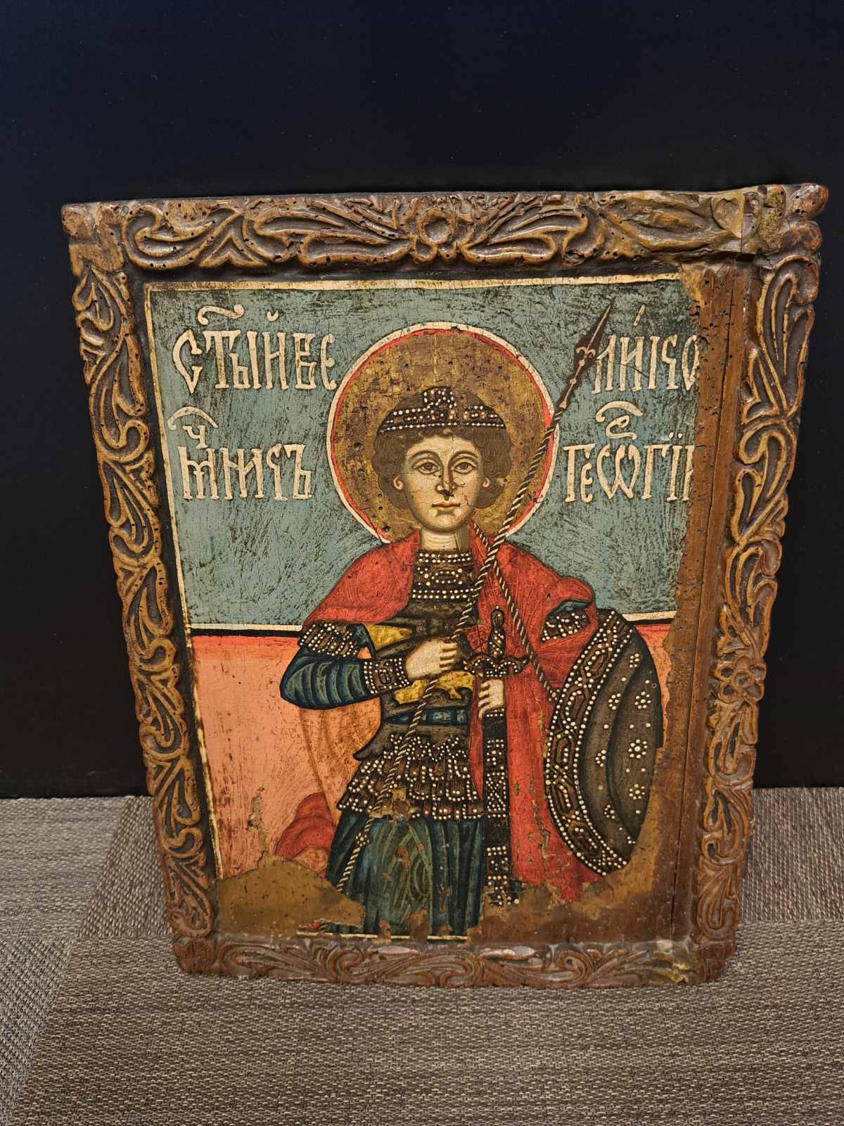 Ikone Sveti Đorđe, srpska ikona, jajčana tempera na drvetu, sredina 18.veka. Ikona Bogorodica Trojeručica Carska Rusija,sredina 19.veka Dimenzija sa ramom 70 x 50 cm Srebrna rizla(žig 13).Austrougarska Ikona Miholjdan –Sveti Kiril Sa minijaturama levo i desno Grčja,prva polovina 19.veka Dimenzija 65 x 47,5 cm Ikona Carska Rusija,kraj 18.veka Dimenzija 52 x 43 cm Ikona Hrist Pantokrator Carska Rusija,sredina 19.veka Dimenzija 31 x 28,5 cm Ikona Rusija,sredina 19.veka Dimenzije 35 x 31 cm Ikona Isus Hrist Rusija,II polovina 19.veka,srebro Dimenzija 36 x 30 cm Ikona triptih Južna Srbija. kraj 17. veka Sveti Nikola,Srbija.kraj XVIII početak XIX veka.Dimenzija ikone 91 x 63 cm (sa ramom) Ikona Bogorodica,Carska Rusija,sredina 19.veka.Dimenzija 105 x 71 cm Sveti Jovan Krstitelj.Južna Srbija,druga polovina XIX veka.Dimezija ikone 85 x 66 cm (sa ramom) Rusija,kraj XVIII početak XIX veka.Dimenzije 53 x 45 cm Rusija,sredina 19.veka.Dimenzije 60 x 48 cm