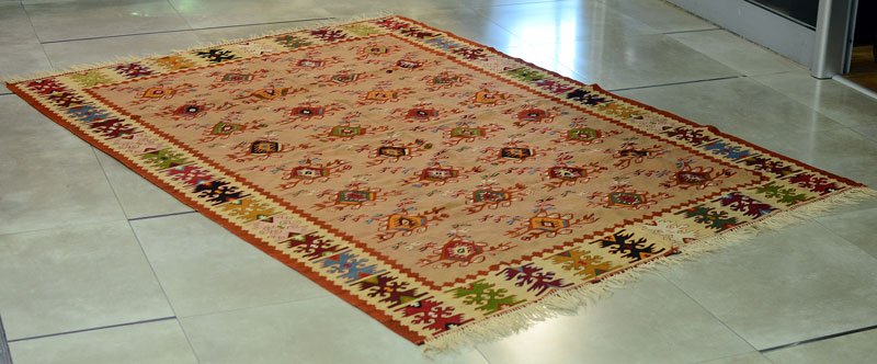 Tepisi Pirotski ćilim Kraj 19. veka Dimenzije: 244 x 168 cm Pirotski ćilim Srpska kruna, 1903. godina Dimenzije: 220 x 138 cm(sa resama) Kavkaski tepih Kraj 19. veka Dimenzije: 157 x 111 cm Kavkaski tepih Kraj 19. veka Dimenzije: 157 x 111 cm