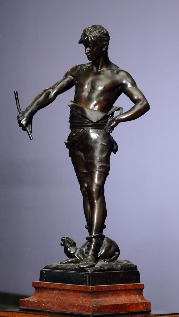 Gladijator figura Bronza, Francuska Eugene Marioton(1857-1933), potpisan Visina: 57 cm